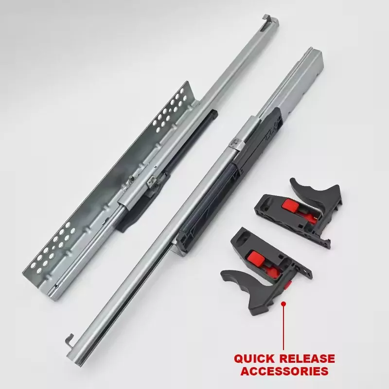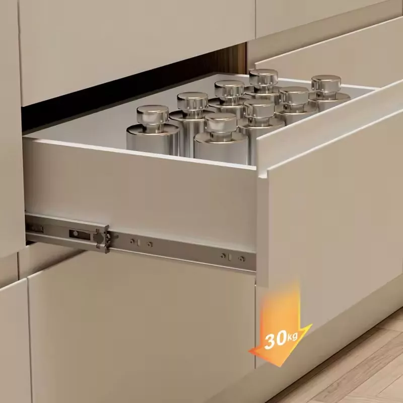 Den første ting at overveje er det materielle valg. Der er to almindelige typer skuffeløbere: kugleleje og remskive. Kugleleje -typer glider mere glat, mens remskifttyper er mere overkommelige. Køkken og badeværelser er ofte fugtige miljøer, og diasskinner af dårlig kvalitet er tilbøjelige til at rustne. Dette øger friktionen og forårsager alvorlig blokering, når man trækker skuffer eller skabsdøre. Over tid kan dette forårsage skader og reducere møblernes levetid markant. Derfor kræver bløde tæt skuffe -lysbilleder visse korrosionsmodstand for at tilpasse sig sådanne fugtige miljøer. Aluminiumslegering, galvaniseret stål eller rustfrit stål anvendes typisk. HY kilder alle dets materialer fra anerkendte indenlandske producenter, hvilket sikrer stabil kvalitet og ydeevne.